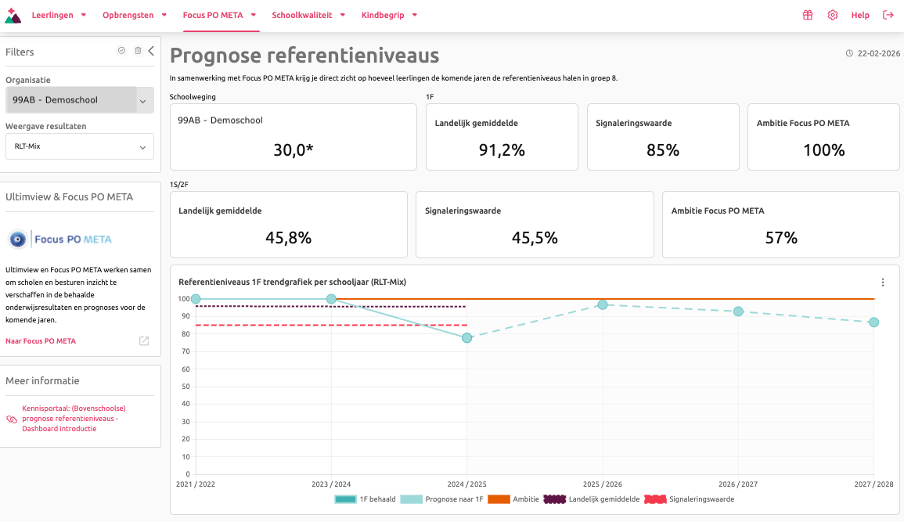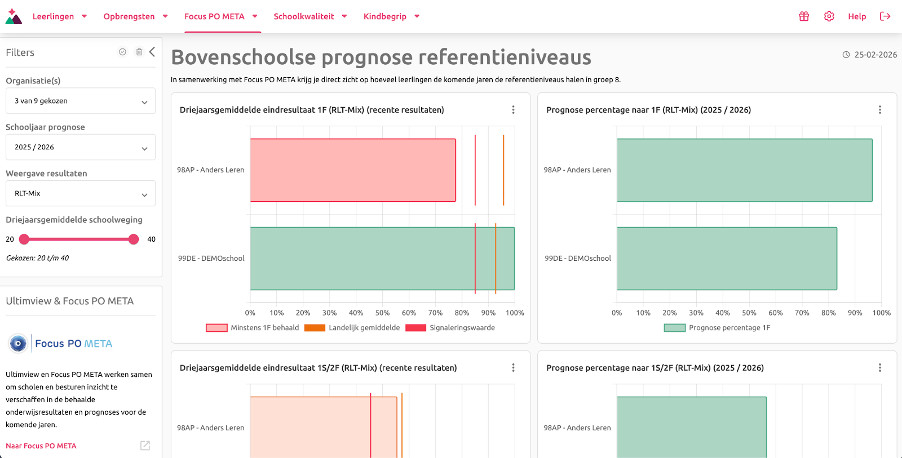 Er zijn enkele vernieuwingen doorgevoerd in de Focus PO META dashboards in Ultimview. Ze bieden schoolleiders en bestuurders nu nog scherper inzicht in de leerresultaten en prognoses. Zo kun je nog gerichter sturen op onderwijskwaliteit.